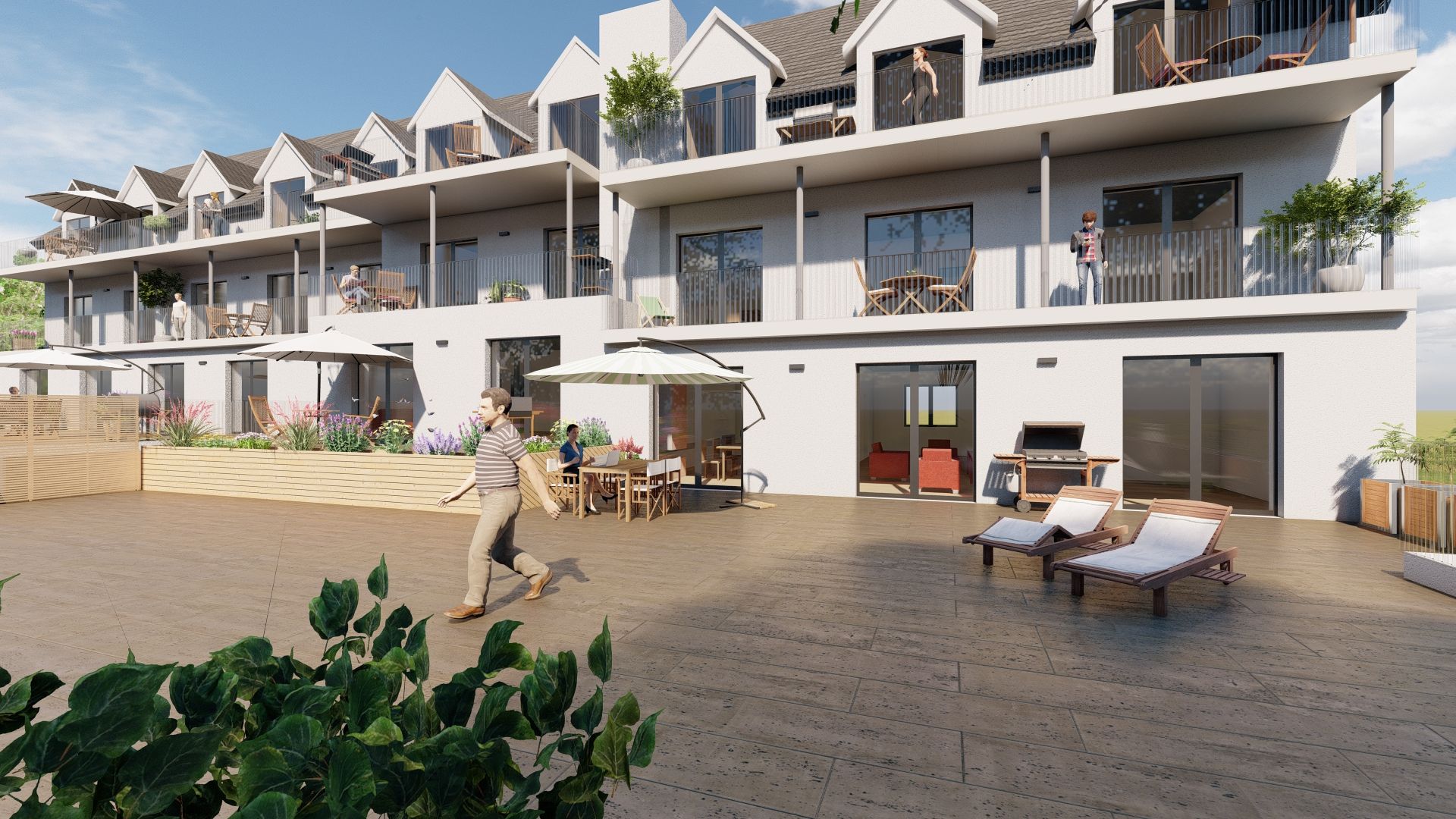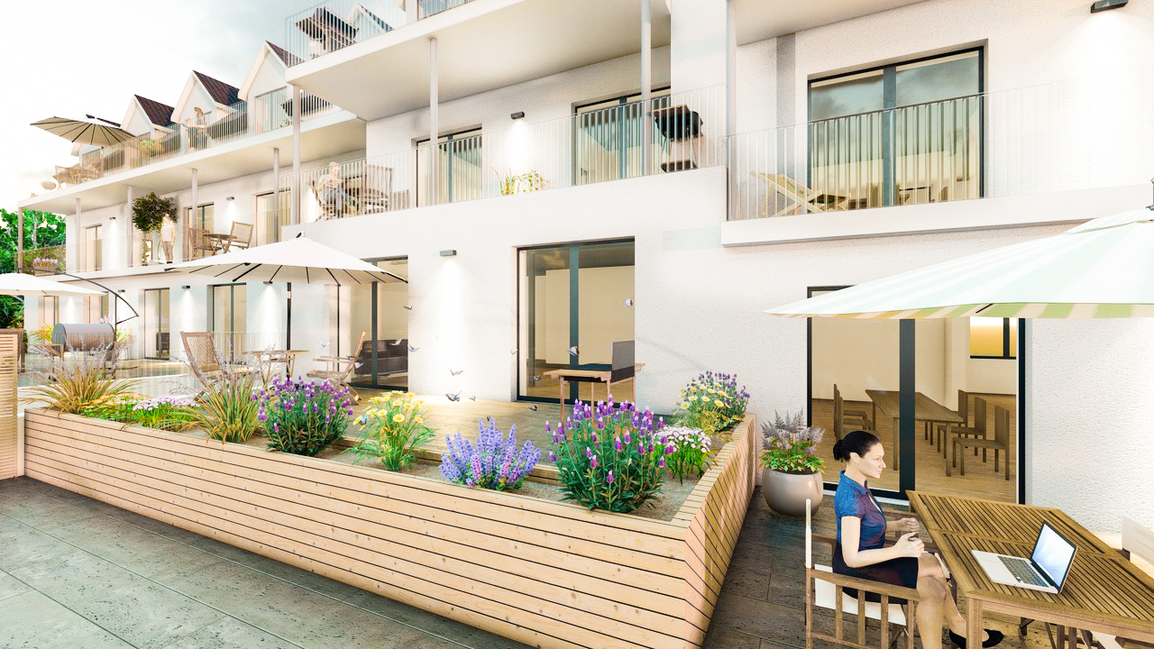 Bei diesen vorwiegend barrierefreien Wohneinheiten haben Sie die Wahl zwischen Wohnflächen von 77 m² bis 158 m². Alle verfügen über Terrassen oder Balkone.